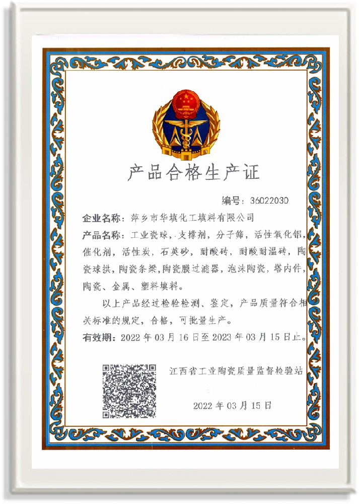 萍鄉(xiāng)市華填化工填料有限公司,位于320國道、109國道、浙贛鐵路、昌金高速公路貫穿其中,交通便利,是江西西部一顆燦爛明珠,創(chuàng)建于20世紀70年代初期,是中國石油天然氣股份有限公司“能源一號網(wǎng)”會員企業(yè)、中國石化物資采購電子商務(wù)網(wǎng)絡(luò)和中國海洋石油總公司采辦業(yè)務(wù)系統(tǒng)成員單位,是上海大學江西材料基因組工程產(chǎn)業(yè)研究院工業(yè)陶瓷產(chǎn)業(yè)創(chuàng)新聯(lián)盟基地,且通過ISO9001:2015質(zhì)量管理體系、ISO14001:2015環(huán)境管理體系、ISO45001:2018職業(yè)健康安全管理體系認證的化工填料生產(chǎn)企業(yè)。公司擁有陶瓷、塑料、金屬填料、催化劑、活性氧化鋁、分子篩等產(chǎn)品生產(chǎn)線,現(xiàn)有固定資產(chǎn)3616萬元,占地面積3.8萬平方米。公司具有悠久的生產(chǎn)歷史、雄厚的技術(shù)力量和先進的生產(chǎn)工藝設(shè)備,可生產(chǎn)工業(yè)瓷球(支撐劑)、陶瓷、金屬、塑料質(zhì)的規(guī)整、散堆化工填料及分子篩、催化劑、生化濾料、活性氧化鋁、石化助劑、活性炭、環(huán)保材料、耐火材料等系列的200多種規(guī)格型號產(chǎn)品。